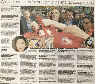 日前,驻新西兰大使吴玺接受新西兰最大英文报纸《新西兰先驱报》商业版主编奥沙利文专访,就新总理阿德恩访华、中新关系等回答了提问。全文如下: