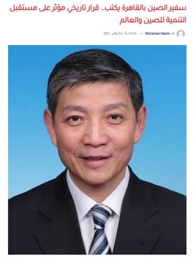 2021年11月24日,埃及“国家回声网”发表驻埃及大使廖力强署名文章《一份影响中国乃至世界未来发展的历史性决议》,全文如下:
