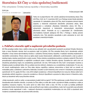 2021年11月25日,驻斯洛伐克大使孙立杰在“新话语”网发表署名文章《走近百年大党,展望共同未来》,介绍中国共产党十九届六中全会精神和《中共中央关于党的百年奋斗重大成就和历史经验的决议》。全文如下: