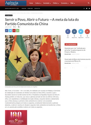 2021年7月15日,驻圣多美和普林西比大使徐迎真在当地主流媒体国家通讯社(STP-Press)、《非屏》(Téla-Nón)、《热带》(Tropical)等发表署名文章《坚守初心为人民,以史为鉴创未来》,宣介习近平总书记在庆祝中国共产党成立100周年大会上重要讲话精神。全文如下: