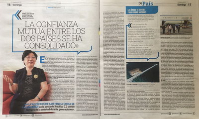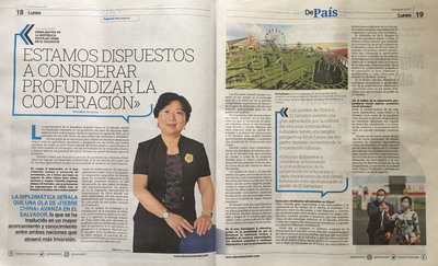近日,驻萨尔瓦多大使欧箭虹就中萨建交三周年接受萨尔瓦多官媒《萨尔瓦多日报》书面采访。8月22日、23日,该报以四整版刊发采访内容,全文如下: