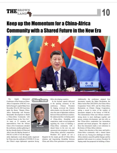 2021年12月14日,驻苏丹大使马新民在《褐色大地报》发表题为《继往开来携手共建新时代中非命运共同体》的署名文章。全文如下:
