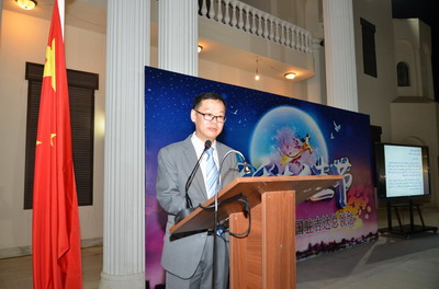 今天我们很高兴在这里共度中华民族的传统佳节——中秋节。中秋是月圆的日子,象征团圆、团聚,更象征着中华民族大家庭的团结。作为中华儿女,我们身在异乡,每逢佳节倍加思念我们的祖国。