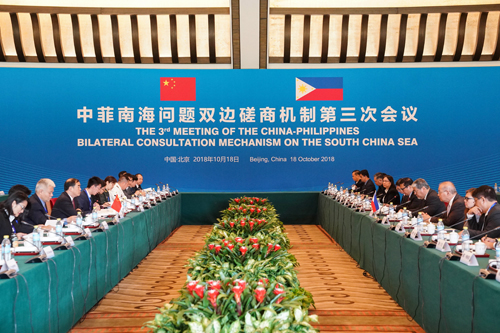 China and the Philippines convened the Third Meeting of the Bilateral Consultation Mechanism on the South China Sea (BCM) on 18 October 2018 in Beijing, People's Republic of China. The Chinese delegation was led by Vice Foreign Minister Kong Xuanyou and the Philippine delegation was led by DFA Undersecretary for Policy Enrique A. Manalo. The Third Meeting of the BCM comprised equivalent officials from the respective foreign ministries and relevant agencies.