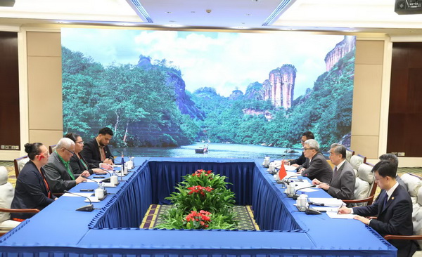 On May 28, 2025, Member of the Political Bureau of the CPC Central Committee and Foreign Minister Wang Yi met in Xiamen with Minister for Foreign Affairs and Immigration of the Cook Islands Tingika Elikana, who is in China for the Third China-Pacific Island Countries Foreign Ministers' Meeting.