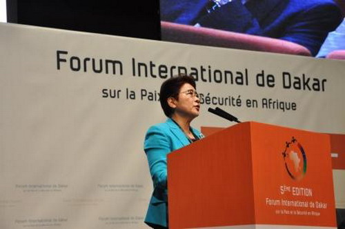 From November 5 to 6, 2018, Special Representative of the Chinese Government on African Affairs Xu Jinghu attended at invitation the fifth Dakar International Forum on Peace and Security in Africa held in Senegal. Special Representative Xu Jinghu delivered a speech at the plenary session. She introduced the Chinese side's propositions and measures to make collaborative efforts to advance the peace and development in Africa, and stressed that the Chinese side will actively implement the outcomes of the Beijing Summit of the Forum on China-Africa Cooperation (FOCAC), and further participate in Africa's peace and security affairs in a constructive manner, so as to make new contributions to realizing lasting peace and sustainable development in Africa.