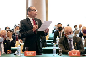 | Ambassador of Ecuador to China asks a question. | Ning Jizhe answers questions of diplomatic envoys. |