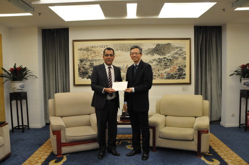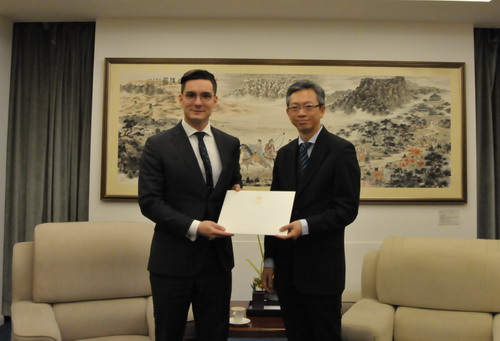 Newly-appointed Hungarian Ambassador to China presents the copy of credentials