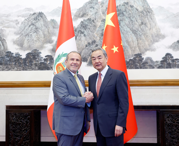 Wang Yi said that during President Xi Jinping's visit to Peru last November, the two heads of state jointly announced the opening of Chancay Port, which has become a landmark event for promoting unity and cooperation among developing countries as well as accelerating their development and revitalization. This carries important significance that goes beyond the bilateral scope. Today, the direct shipping route "From Chancay to Shanghai" has been fully opened in both directions, forming a growing container shipping network that covers multiple countries in Asia and Latin America. This will help Peru strengthen its capacity for independent development and play a more important role in the overall development of Latin America. It fully proves that deepening practical cooperation between China and Peru serves the fundamental and long-term interests of Peru and its people. President Xi Jinping has proposed a new direction for China-Peru cooperation with trade and investment as two driving forces, traditional and emerging industries developing in parallel, and industrial and supply chains fully integrated. China is ready to work with Peru to follow this direction, deepen mutually beneficial cooperation across all sectors, ensure the sound development and operation of Chancay Port, accelerate the approval of the protocol to upgrade the free trade agreement, and expedite negotiations on signing an agreement to avoid double taxation.