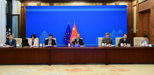On July 8, 2021, State Councilor and Foreign Minister Wang Yi held a video meeting with EU High Representative for Foreign Affairs and Security Policy Josep Borrell Fontelles.
