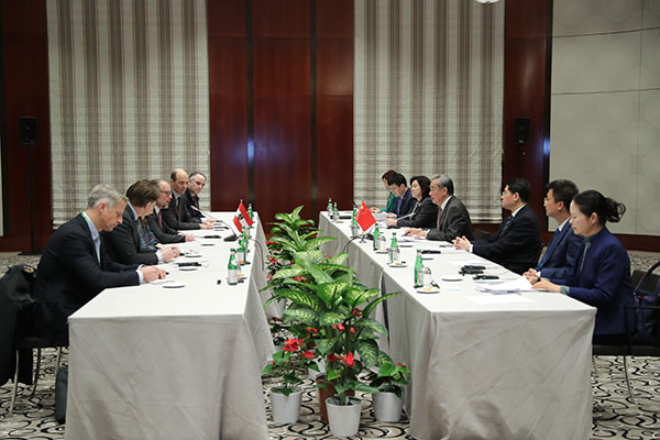 Noting that the world currently faces overlapping security challenges and economic risks as well as an array of interwoven factors of instability and uncertainty, Wang Yi said that the international community is concerned about division and confrontation and has a yearning for peace and stability. The focus of this year's Munich Security Conference on multipolarization is timely. China's original aspirations remain unchanged, which conforms to the trend of peaceful development and consistently play a positive role in a changing world. As a permanently neutral country, Austria has long played the role of a bridge-builder and mediator in international affairs. China is ready to work with Austria to jointly voice support for upholding multilateralism, safeguarding the authority of the United Nations (U.N.), defending the international rule of law and resisting unilateral bullying. China welcomes Austria to seize the new opportunities brought by China's new development, deepen mutually beneficial cooperation between both sides, and advance China-Austria relations to continue being at the forefront of China-EU relations. This year marks the 50th anniversary of the establishment of diplomatic relations between China and the European Union (EU). China is ready to work with European countries, including Austria, to invigorate China-EU relations and drive progress in the next 50 years.