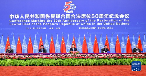 On October 25, 2021, President Xi Jinping attended the conference marking the 50th anniversary of the restoration of the lawful seat of the People's Republic of China in the United Nations and delivered an important speech in Beijing. Xi Jinping stressed that the past five decades since New China restored its lawful seat in the United Nations have witnessed China's peaceful development and its commitment and dedication to the welfare of all humanity. China will stay committed to the path of peaceful development and always be a builder of world peace. China will stay committed to the path of reform and opening-up and always be a contributor to global development. China will stay committed to the path of multilateralism and always be a defender of the international order. China will be happy to work with all countries under the principle of extensive consultation, joint contribution and shared benefits, advocate the common values of humanity, and practice true multilateralism. Let us stand on the right side of history and the side of human progress, and work tirelessly for the lasting and peaceful development of the world and for building a community with a shared future for mankind.