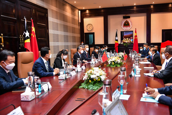 Ruak warmly welcomed Wang Yi's visit to Timor-Leste on the occasion of the 20th anniversary of the establishment of diplomatic ties between the two countries, saying that the visit shows the great importance China attaches to bilateral relations and its positive willingness to deepen bilateral cooperation. Ruak said that Timor-Leste and China have a long history of exchanges and since the establishment of diplomatic ties, the two countries have carried out mutually beneficial cooperation in a wide range of areas. Timor-Leste sincerely thanked China for having assisted the country in a time of urgent need and helping the country safeguard security, deal with disasters and fight the pandemic since the establishment of diplomatic ties. Timor-Leste thanked China for speaking up for the country in the international arena and supporting Timor-Leste's integration into the international system. Timor-Leste will always be a friend of China and will stay committed to consolidating the achievements of the establishment of diplomatic ties, firmly pursuing the one-China principle, expanding friendly cooperation and opening up new prospects for the development of bilateral relations.