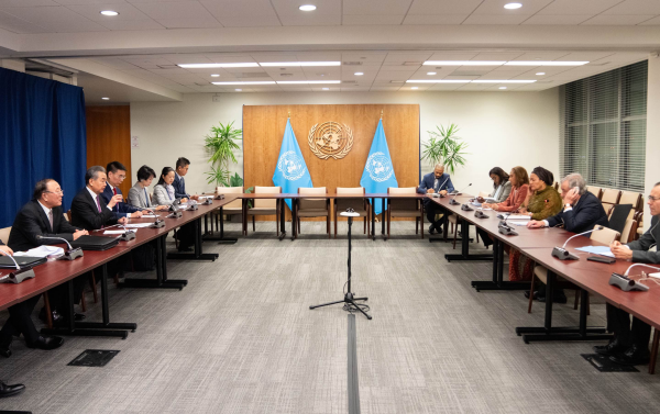 On November 28, 2023 local time, Member of the Political Bureau of the CPC Central Committee and Foreign Minister Wang Yi met with Secretary-General of the United Nations António Guterres at the UN Headquarters in New York.