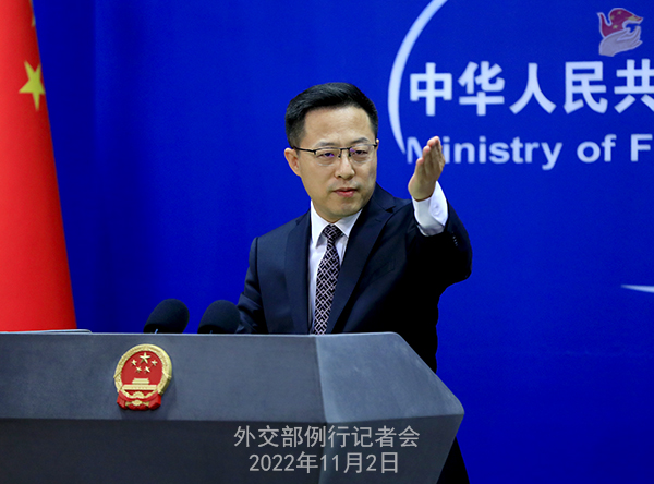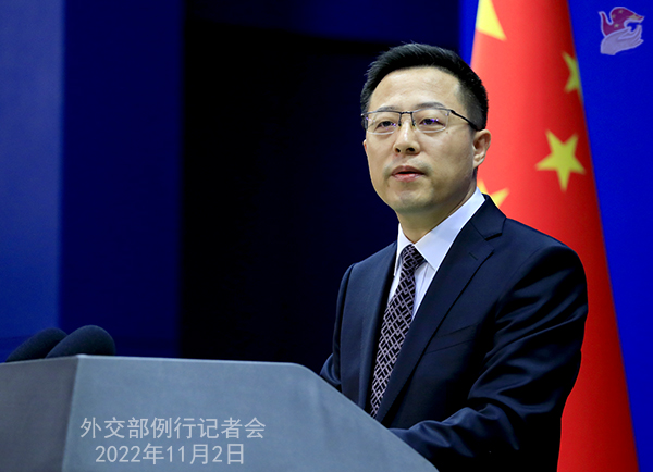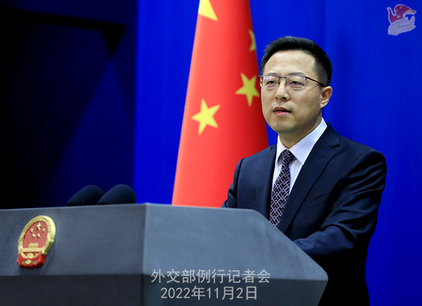 Zhao Lijian: On the morning of 2 November, President Xi Jinping met with Prime Minister Muhammad Shehbaz Sharif of Pakistan on his official visit to China at the Great Hall of the People.