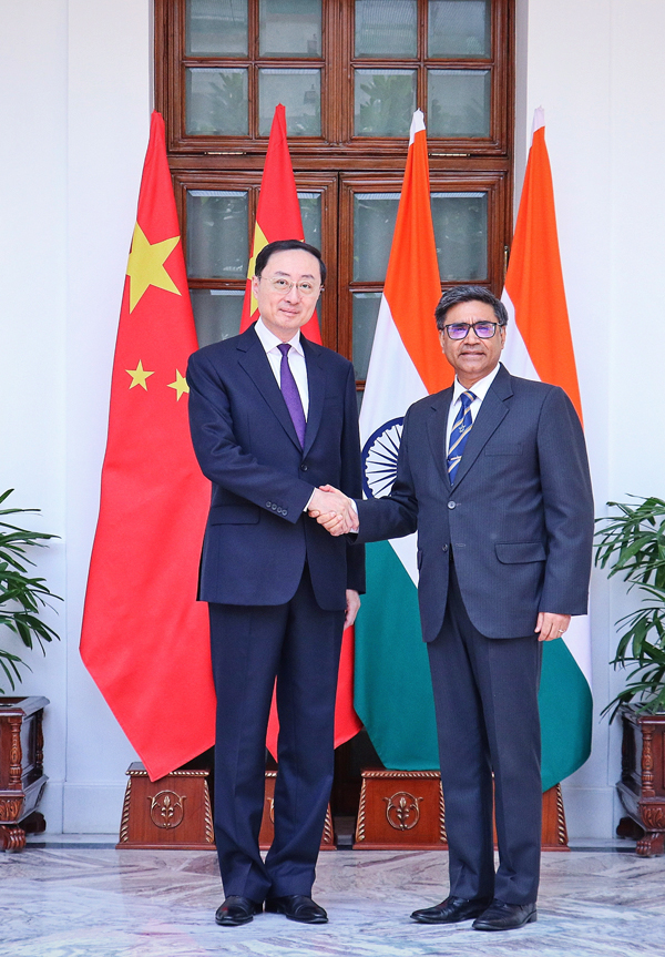 Sun Weidong and Vikram Misri held a candid and in-depth exchange of views on bilateral exchanges and cooperation as well as international and regional issues of mutual interest. The Indian side reaffirmed its support for China's Shanghai Cooperation Organization presidency. The two sides agreed to jointly make preparations for the 24th Special Representatives' Meeting on China-India Boundary Question, which will be held at an appropriate time. The two sides will continue to hold commemorative activities for the 75th anniversary of diplomatic relations, push for the resumption of direct flights and exchange of resident journalists at an early date, facilitate people-to-people exchanges, resume bilateral dialogue mechanisms steadily, and ensure Indian pilgrims' smooth visit to Mount Gang Rinpoche and Lake Mapam Yun Tso in the Xizang Autonomous Region of China.