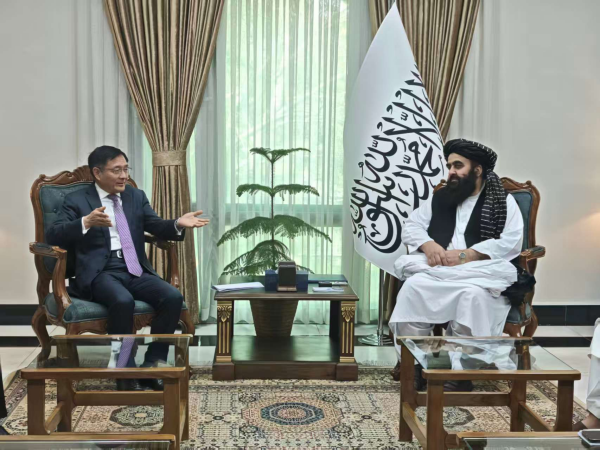 (Special Envoy Yue Xiaoyong meets with Afghan Foreign Minister Mawlawi Amir Khan Muttaqi)