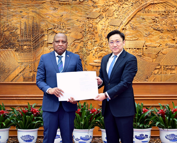 On April 8, 2026, Deputy Director-General of the Protocol Department of the Foreign Ministry Wang Xiaofeng accepted the copy of credentials presented by newly-appointed Ambassador of Botswana to China Lekoko S. Kenosi, who arrived in China on April 4.