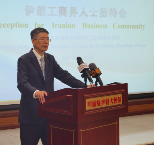 On the evening of July 24th, the Chinese Embassy in Iran held a reception for Iranian business community, attended by Zeighami, Deputy Minister of Industry, Mine and Trade and Head of Trade Promotion Organization, Hassanzadeh, President of Iran Chamber of Commerce, Industries, Mines & Agriculture, Hariri, President of Iran-China Chamber of Commerce and Industries, as well as other government officials and representatives of Iranian business community.