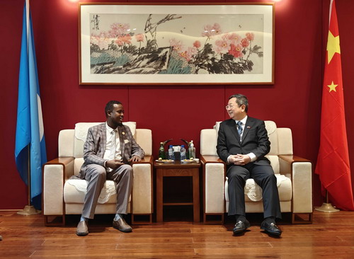 On 17 October, H.E. Wang Yu, Chinese Ambassador to Somalia, met with H.E. Yusuf Mohamed Adan, State Minister of Labour and Social Affairs of the Federal Republic of Somalia. The two sides exchanged views on enhancing cooperation in vocational training and youth career development.
