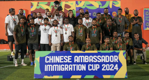 He Fen congratulated the winning team, thanked the Maldives Immigration for its support and cooperation with the Chinese Embassy, and expressed expectation of strengthening coordination and cooperation with the Maldives Immigration to provide more convenience for the entry and exit of Chinese citizens in the Maldives, to promote personnel exchanges between the two countries and the development of China-Maldives comprehensive strategic cooperative partnership.