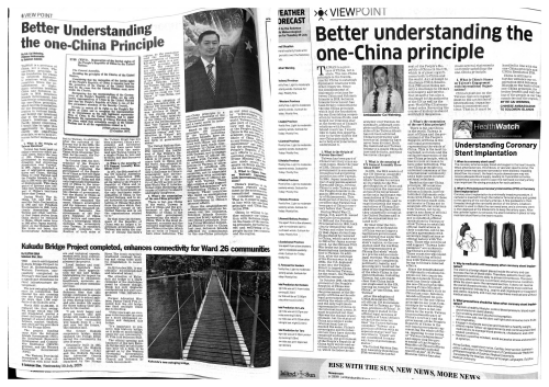 Recently, Chinese Ambassador to Solomon Islands H.E. Cai Weiming published an article titled "Better Understanding of the one-China Principle" on Solomon Star and Island Sun newspapers, comprehensively introducing the one-China principle. The full text is as follows: