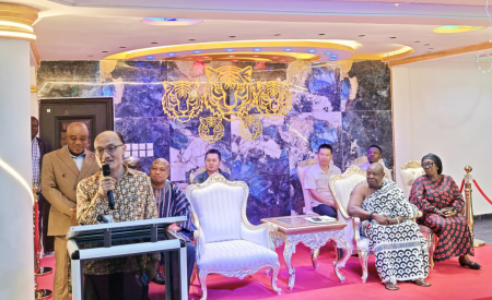 On 31st July, H.E. Ambassador Tong Defa visited Aflao Traditional Area, Ketu South District in the Volta Region. Togbui Adzongaga Amenya Fiti V, Hon. Samuel Okudzeto Ablakwa, Minister for Foreign Affairs, and Hon. Abla Dzifa Gomashie, Minister for Tourism, Culture and Creative Arts were alongside with Amb. Tong. The two sides exchanged views on the cooperation between China and Ghana.
