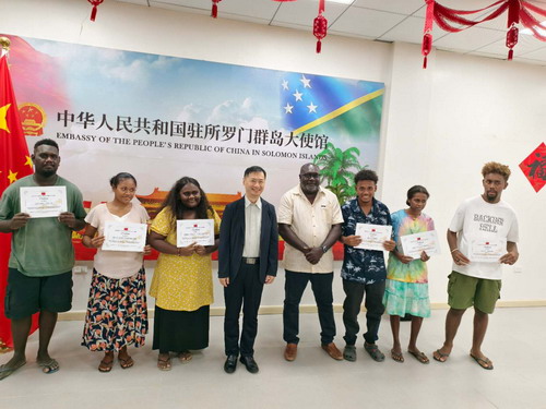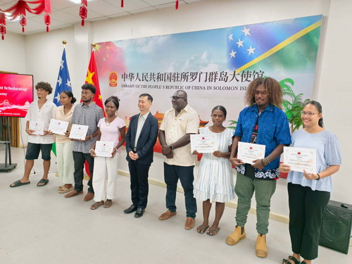 Ambassador Cai congratulated the scholarship receivers, noting that the deepening China-Solomon Islands cooperation in education provides strong support for SI' s human resource development. He encouraged the students to study diligently, broaden their knowledge, contribute to national development, serve as ambassadors of friendly exchanges between China and Solomon Islands, and help create an even brighter future for China-Solomon Islands friendship.