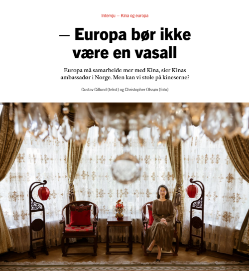 On August 20, 2025, H.E. Ambassador Hou Yue gave an interview to Klassekampen, the third-largest print media outlet in Norway.