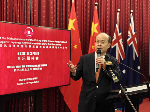 On 30 August 2025, the Embassy of the People’s Republic of China in Australia hosted a music reception titled “Voices of Peace and Remembrance: Echoes Eighty Years On” to commemorate the 80th anniversary of the victory of the Chinese People’s War of Resistance Against Japanese Aggression and the World Anti-Fascist War. Nearly 400 guests attended the event, including Ambassador Xiao Qian, Federal Senator David Shoebridge, dignitaries from various sectors, representatives of diplomatic missions in Australia, as well as members of the Chinese community and international students.
