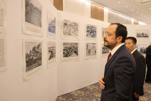 At the reception, President Christodoulides also visited a photo exhibition commemorating the 80th anniversary of the victory of the Chinese People’s War of Resistance Against Japanese Aggression and the World Anti-Fascist War.