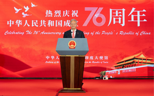 On Sept 23th, 2025, the Chinese Embassy in India held a reception to solemnly celebrate the 76th Anniversary of the Founding of the People’s Republic of China. H.E. Mr. Chatterjee, secretary of the Ministry of External Affairs of India, together with representatives from Indian government, political parties, enterprises, think tanks, media, diplomatic missions as well as overseas Chinese, Chinese enterprises and students attended the reception.