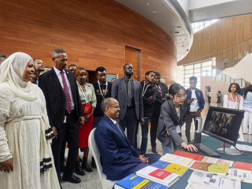 During the event, H.E. AUC Chairperson Mahmoud Ali Youssouf and other high-level officials visited the Skills Development Marketplace and Exhibition, where they experienced Chinese AI products at the booth of Luban Workshop and Confucius Institute.