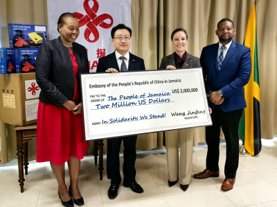 On December 3, 2025, His Excellency Wang Jinfeng, Chinese Ambassador to Jamaica, attended the handover ceremony for the grant assistance and donation of humanitarian items by the Government of the People’s Republic of China to the Government of Jamaica, and gave a speech. Senator the Honourable Kamina Johnson Smith, Minister of Foreign Affairs and Foreign Trade of Jamaica, Mr. Arvin Gayle, the Director General of the Office of Disaster Preparedness and Emergency Management attended the ceremony and delivered remarks. Ambassador Sheila Monteith, Permanent Secretary of the Ministry of Foreign Affairs and Foreign Trade attended.