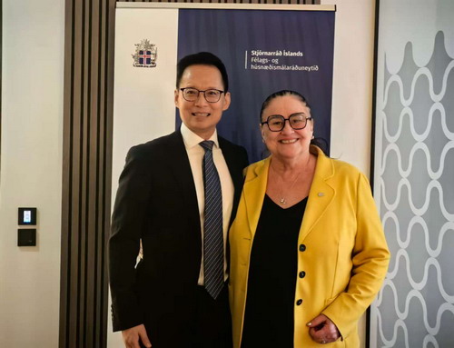 Ambassador He briefed the Minister on the guiding principles of the Fourth Plenary Session of the 20th CPC Central Committee, emphasizing that China will steadfastly implement the 15th Five-Year Plan, continue to advance high-level opening-up, foster new prospects for win-win cooperation, and remain a trustworthy partner to all countries including Iceland. Ambassador He expressed China’s readiness to work with Iceland to deepen friendly exchanges and cooperation across various fields for the benefit of both countries and their peoples.