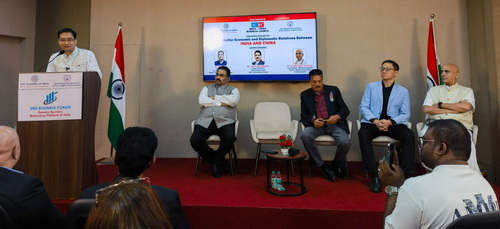 On November 25, Consul General Qin Jie was invited to attend the Interactive Session on Exploring Better Economic and Diplomatic Relations Between India and China—a seminar co-hosted by the SME Chamber of India, India-China Business Council, and Maharashtra Industry Development Association.
