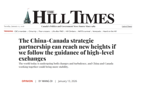 On January 13, 2026, Chinese Ambassador to Canada Wang Di published a byline article titled "The China-Canada strategic partnership can reach new heights if we follow the guidance of high-level exchanges" on the Hill Times. The full article is below: