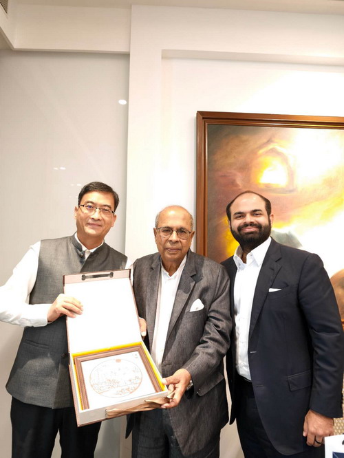 On February 10, Consul General Qin Jie visited the Hinduja Group and held talks with the company's Chairman, Prakash Hinduja.