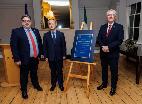 On 27 February, Ambassador Zhao Xiyuan attended the inauguration ceremony of the International College of Electronic Information Engineering jointly established by Dublin City University and Hangzhou Dianzi University. Paul McAuliffe TD, Professor Daire Keogh, President of Dublin City University and Vice President Charlotte Holland, as well as representatives of Chinese students were present at the event.