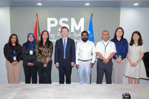 On March 9, Chinese Ambassador to the Maldives H.E. Mr. Kong Xianhua visited the Public Service Media (PSM) of the Maldives. He held discussions with PSM Chairperson, Ms. Aminath Namza, to exchange views on strengthening China-Maldives media exchanges and cooperation.
