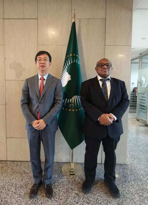 On February 4th, Ambassador Jiang Feng met with H.E. Mohamed El-Amine Souef, Chief of Staff to the AUC Chairperson. Both sides had an in-depth exchange on international and regional issues of mutual concern, and expressed readiness to enhance communication and coordination to further deepen China-AU practical cooperation.