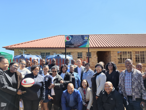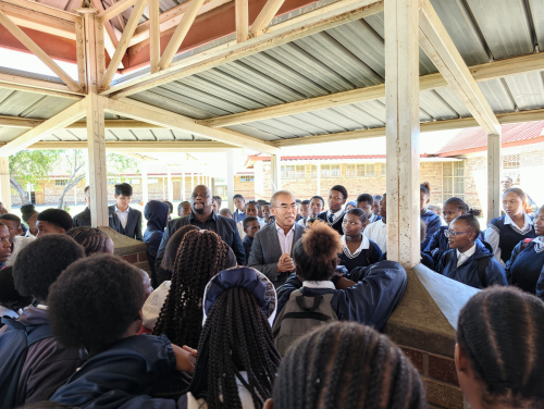 On April 20, 2026, Mr. Pan Qingjiang, Consul General of China in Johannesburg attended the Borehole Donation Ceremony at JC Motumi Secondary School in Matjhabeng, Free State. Several hundreds of people were present, including Mr. Mxolisi Dukwana, the Speaker of the Free State Legislature, Mr. IA Rakgoasi, the principal of school, local officials, teachers and learners.