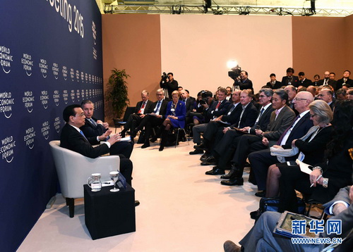Premier Li: Ladies and gentlemen, dear friends, when I landed at the Zurich airport yesterday, it was drizzling, reminding me of the current world situation: a weak economic recovery and peace and stability facing threats. But when we got to Davos, it was all sunshine here. It is you, entrepreneurs from across the world, those having links with China in particular, who have brought sunshine to Davos. I am delighted to have this interaction with you.