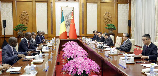 On December 8, 2023, Member of the Political Bureau of the CPC Central Committee and Foreign Minister Wang Yi held talks with Mali's Foreign Minister Abdoulaye Diop. Mali's Minister of Economy and Finance and Minister of Industry and Commerce, among others, were present.
