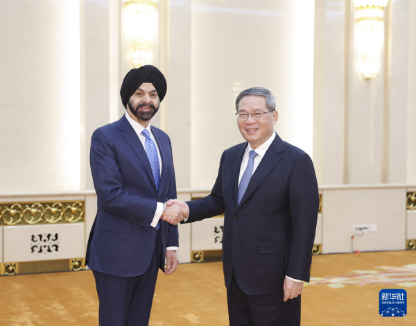 On the morning of March 25, 2024, Premier Li Qiang of the State Council met with President of the World Bank Group Ajay Banga at the Great Hall of the People.