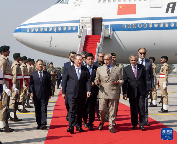 At noon on October 14, 2024 local time, at the invitation of Prime Minister Muhammad Shehbaz Sharif of Pakistan, Premier Li Qiang of the State Council arrived at PAF Base Nur Khan Airport in Islamabad by chartered plane to start his official visit to Pakistan and attend the 23rd Meeting of the Council of Heads of Government of Member States of the Shanghai Cooperation Organization (SCO).