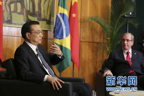 On the afternoon of May 19 local time, Premier Li Keqiang met at the National Congress in Brasilia with President of the Chamber of Deputies Eduardo Cunha of Brazil.