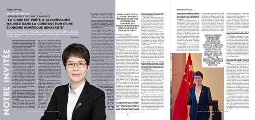 On 26 November, Ambassador Huang Shifang gave a written interview to the Mauritian media Business Magazine, presenting the key messages of the Fourth Plenary Session of the 20th Central Committee of the Communist Party of China and the 15th Five-Year Plan.