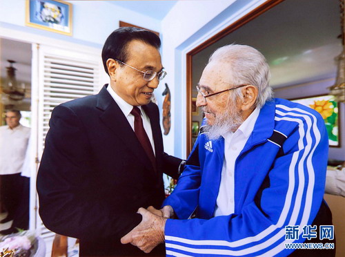 El 25 de septiembre de 2016 por la tarde, hora local, el Primer Ministro del Consejo de Estado Li Keqiang hizo una cordial visita al líder de la revolución cubana Fidel Castro en la Habana. Los dos conversaron por largo tiempo intercambiando a fondo sobre una amplia gama de temas de interés común, tales como la relación chino-cubana, la paz mundial, el punto caliente de la zona y la seguridad alimentaria. Cheng Hong, la señora de Li Keqiang, estuvo presente en la reunión.