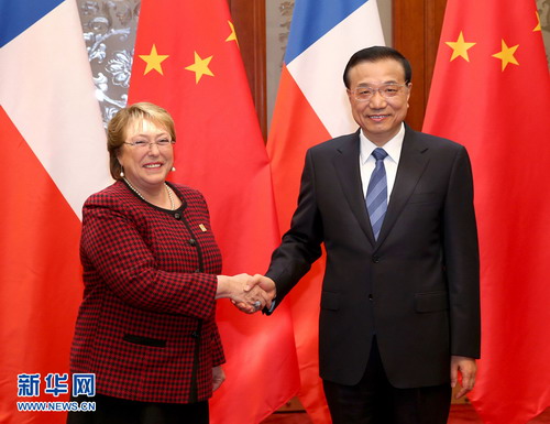 El 10 de noviembre de 2014 por la mañana, el Primer Ministro del Consejo de Estado Li Keqiang se reunió con la Presidenta de Chile Michelle Bachelet en el Gran Palacio del Pueblo.